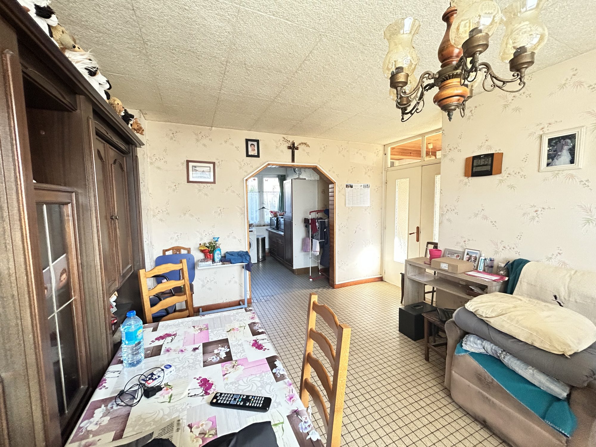 Maison mitoyenne comprenant hall d'entrée, séjour, cuisine, salle d'eau, WC